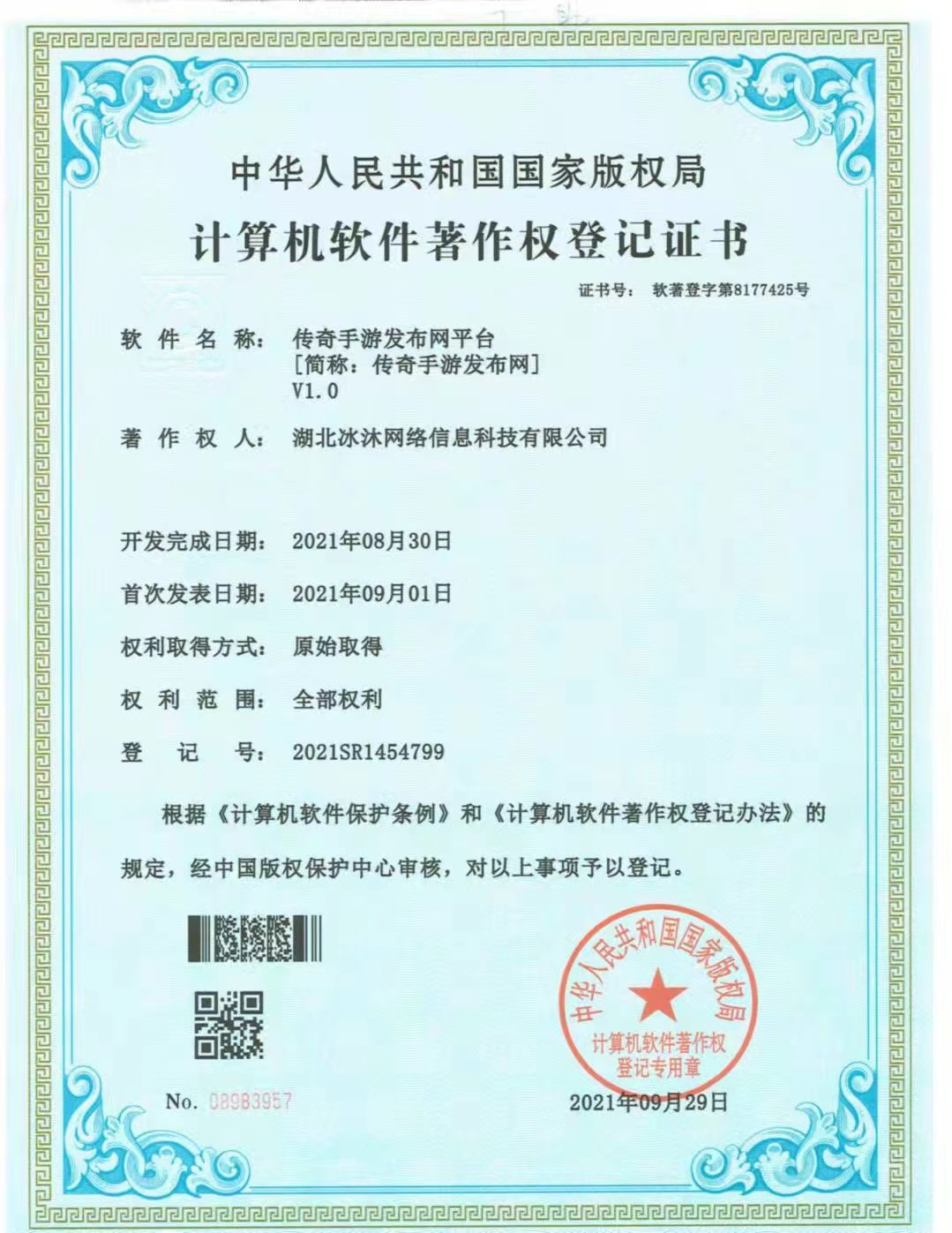 (计算机软件著作权登记证书)
